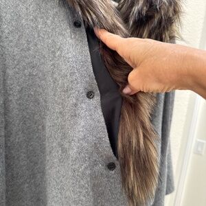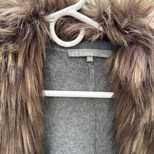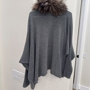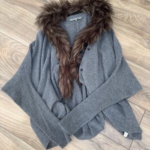 27 Miles Malibu cashmere and fur neck sweater!! size small, only worn one time! The fur neck is detachable to wear the sweater only, oversized and very draped, so cozy can be worn dressed up or down around the house. Beautiful dark gray color.