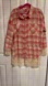 Stylish pink plaid button-up shacket with front pockets, with underlying mesh. Perfect for casual wear.