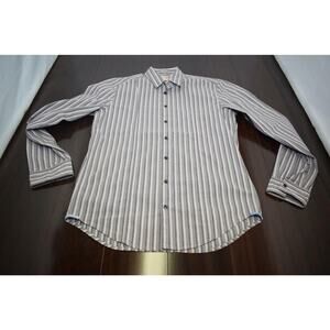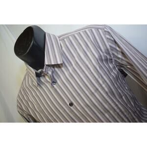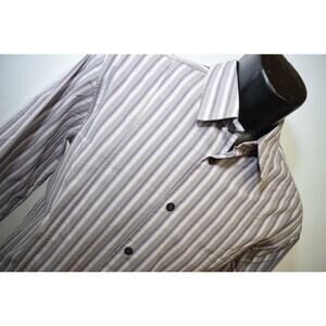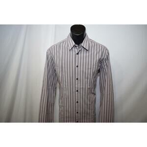 27356 Mens Hugo Boss Orange Lable Stretch Fit Striped Dress Shirt Size Large