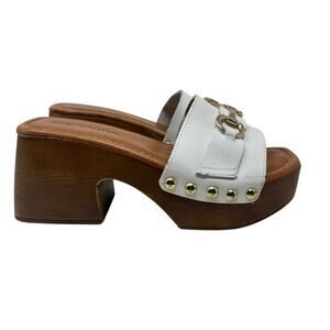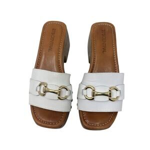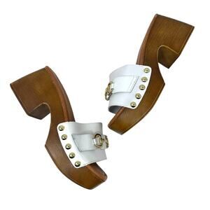 275 Central Sloane Sandal Shoes Clog Heel Gold Hardware White Size 37 US 7