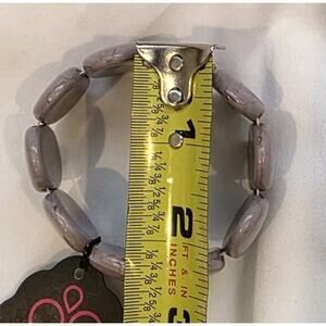2.75 Inch Paparazzi Gray Marbled Bracelet Elastic Band With Tags Heavier Weight in pre-owned, never used, condition. See photos for details. All photos are magnified to show details.
