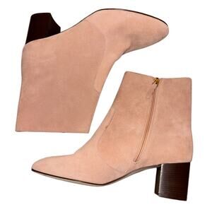 $275 J Crew Women 10.5 Ankle Stacked Heel Boots Suede Soft Blush Upper Leather