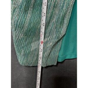 The dress is lined and has a ruched sleeve type, which adds to its unique style. It comes in a beautiful metallic green color and is available in a women's regular size medium. This dress is perfect for any season, whether it's winter, summer, fall, or spring. Don't miss out on this stunning piece!