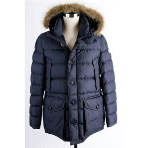 Beautiful, popular, and discontinued model from Moncler. Excellent warmth. Great quality. Real fur hood. Moderate stains at pockets. Price reflects. Otherwise excellent condition.
