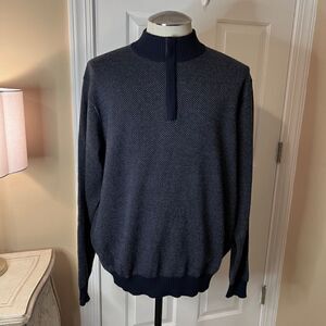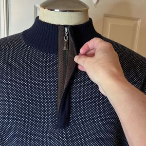 $278 NWOT Men's Peter Millar Jacquard Wool Quarter Zip Sweater Navy Dot Size XL