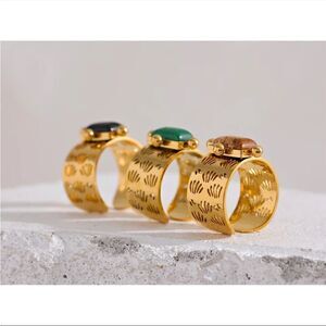 #27 Retro 18k Gold Pated Agate Stone Ring
