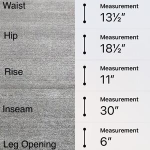 Tag size 9 Med, measures 27X30. Always refer to exact measurements-See pics for full flat measurements. Use rise measurement to get exact waist placement.