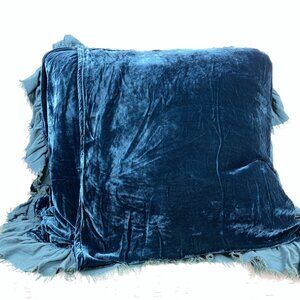 27x27 Bella Notte Teal Rayon And Silk Velvet Chiffon Trim Pillow Cover XL