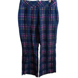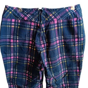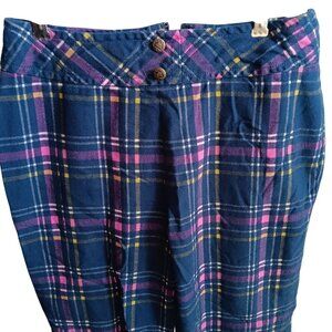27x27 True Vtg 60's Womens PINK/YELLOW/BLUE PLAID REAR ZIP BOOTCUT MOD JEANS