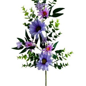 28" Gerber Daisy filler spray with purple flowers and mixed greenery. Use to fill in your spring wreaths and florals!