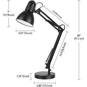 28" Heavy Base Top Moving Spring Balanced Swing Arm Desk Lamp, Black, On/Off