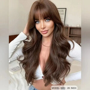 Natural Brown Long wave Curly Gorgeous Wig, Synthetic High Quality fiber, Human hair appearance, Long Hair Perfect for Daily Wear. Trendy, fashionable, and comfortable Copper color long wavy wig. Made with heat resistant fiber. Can be styled with a curling iron or straight iron under 150F. The cap is adjustable for easy wear and also attached instructions. Front hair mimics the natural hair look, making it look natural. The hair parting is fixed. Its appearance and texture are very similar to real human hair, soft feel, and are easy to comb. You can wear it on any occasion such as formal, casual, entertainment, and when taking photos in your daily life. It can add to your beauty. Condition: brand new / no defects or flaws Material: synthetic wig Color: Natural Dark ash blonde Fiber: heat resistant Length: 26” inches Comes from pet free and smoke free home. Thank you for checking out my closet. I would love to accept your offer, so feel free to Send Offers . Bundle for a discount on your Order. Item ships same/next day. If you have any questions please feel free to reach out Wbx#1/ w8