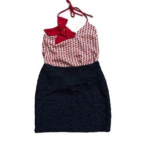 (28) Jessica Simpson Red Halter Top, Small, Backless, Silk Fabric