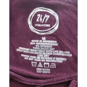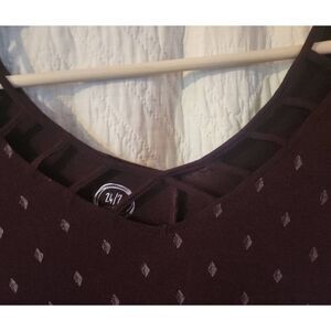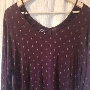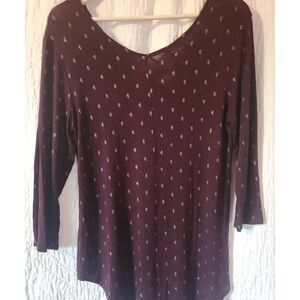▪︎DESCRIPTION: Small diamond print burgandy 3/4 length top with cut out scoop neck
