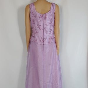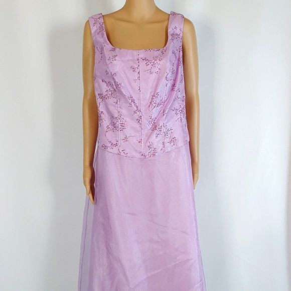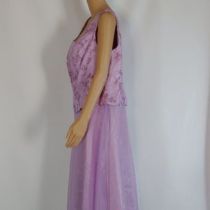 New without Tag Faviana Long Gown in Lilac Color. The dress has a square neckline and sleeveless. This is a one-piece dress. Great for mother-of-the-bride attire.