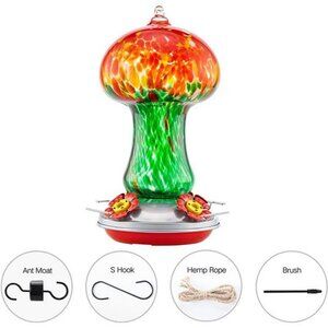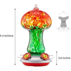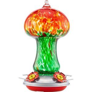 28 Ounces Hand Blown Glass Hummingbird Feeder for Outside, 4 Feeding Perch