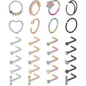 28 Pack Nose Rings Stainless Steel Hoop L Shape Nose Studs Nose Screw Bone