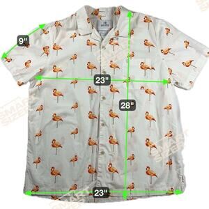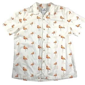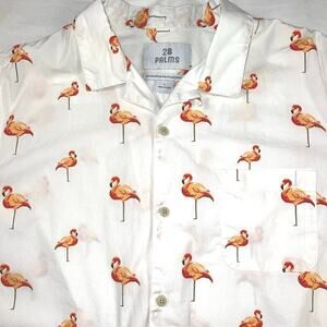 28 Palms 100% Cotton Pink Flamingos Hawaiian Shirt Size L