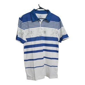 Floral Polo Men’s Medium Shirt White/Blue Floral Stripe Shirt New