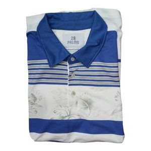 28 Palms Floral Polo Men’s Medium Shirt White/Blue Floral Stripe Shirt New