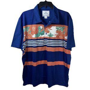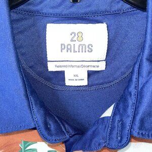 This is a men's 28 Palms relaxed polo shirt in size 2XL. It features a tropical blue and orange design with a collared neckline and short sleeves. The shirt has a 1/4 button-up style and is perfect for a Hawaiian or tropical themed look.