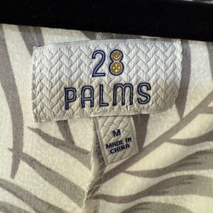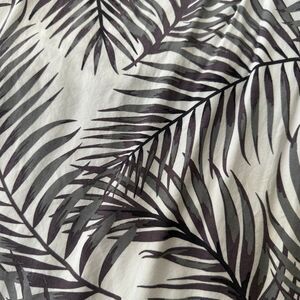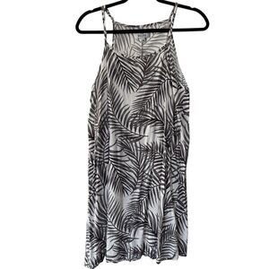 28 Palms Women's Tropical Print Spaghetti Strap Shift Mini Dress, White with Gray Palm Leaves.