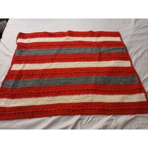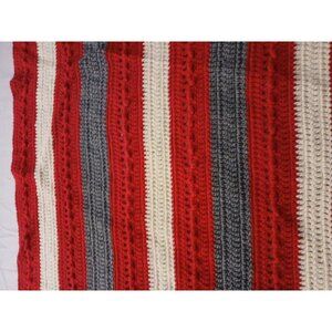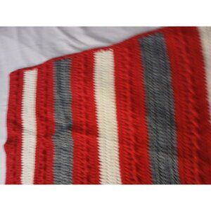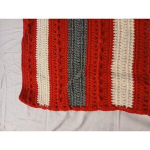28 X 36 Handmade Crochet Baby/Lap Blanket Throw Red White Grey Stipes