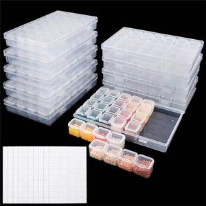 🧿💎Contents - 10 28-grid diamond painting organizer boxes, with 4 grids as a group, 7 groups per box, and 400 stickers as gifts.