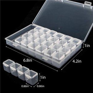 🧿💎Dimensions - External diamond painting storage box size is 6.7 x 4.2x 1inch (17.5 x 10.6 x 2.6cm), each grid size: 1 x 0.86 x 0.86inch (2.54 x 2.2 x 2.2cm).