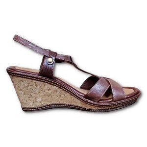 Trendy, wedge, cork, strap, leather, comfortable, sandal, heel, classy, classic, casual, chic, neutral, coastalgranny, grannycore,