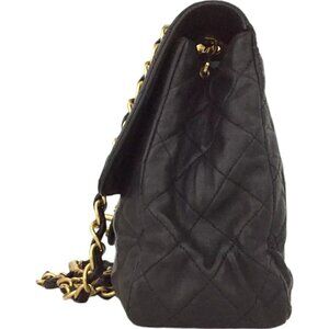 (X6) Chanel Shoulder Bag Quilted Matelasse CC Logo Black Lambskin