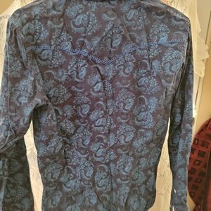 (2825) Rough Stock Panhandle Slim Western Top ,Shirt,Blue Paisley, Size Medium ,pre-owned Good Condition