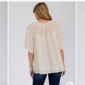 #283 Tan Bobo Ho Style Short Sleeve Blouse