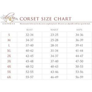 Full boning with nickel brass grommets, laces for cinching, satin with sequined, mesh overlay