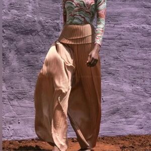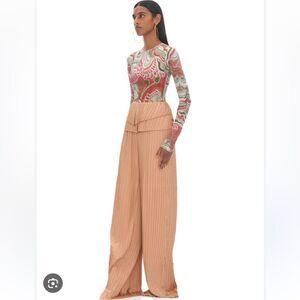 $284 Andrea lyamah Toffee Satin Pleated Linea Pant NWT