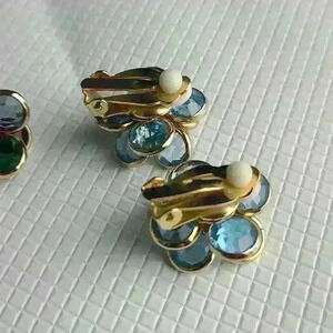 2/$85 Vintage Gold-toned colorful 3D crystal flowers clip on earrings bundle
