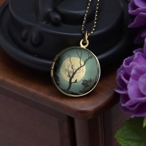 One of a kind Custom Vintage Whimsical Locket with Harvest Moon and Tree Art. Pendant Locket with Chain Necklace Included. A touch of gothic charm from N8tive Jules. No scratches. In Excellent condition. 22โ Chain 13/16โ Locket