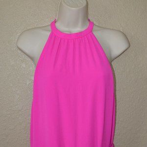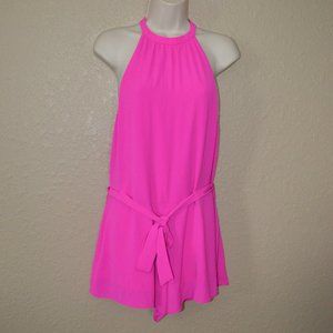Sz S Anthropologie SAYLOR Hot Pink Halter Style Tie Waist Slit Back Romper
