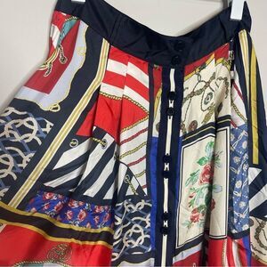 Nautical print button front skirt with side pocket