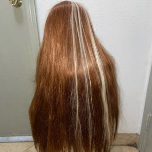 29" Light brown with blonde highlights Color Wig, Silky Straight with bangs New