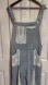 Stylish blue denim jumpsuit with patchwork details. Features wide legs and adjustable straps.