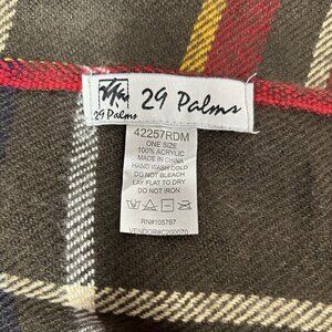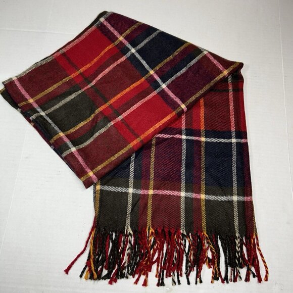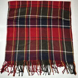 29 Palms Long Red Green Plaid Blanket Scarf with Fringe Unisex Size 26”x78”