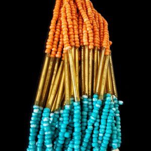 The multi-strands of Orange, Turquoise, Magenta and Yellow plastic seed beads give a feel of fun and confidence. A beautiful statement necklace will draw attention and bring alive any outfit you wear with it. Will go well with a Maxi dress, or casual outfit.