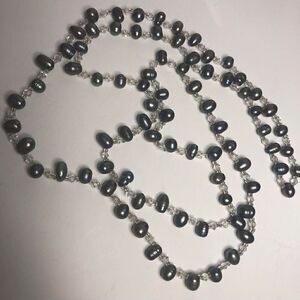 290 Black peacock freshwater pearl crystal long necklace 37"