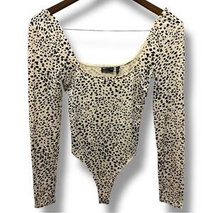 291 ASOS | NWOT Mauritius Cream Leopard Print Long Sleeve Bodysuit (size 4)