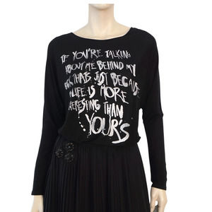 This 3/4 Sleeve tee from 291 FROM VENICE has been crafted from soft, tissue-weight cotton jersey and features an irreverent sentiment about gossip -- 'If you're talking about me behind my back that's just because my life is more interesting than yours.'