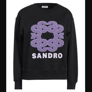 $295 SANDRO Black Purple S Boucle Pullover Crewneck Fleece Sweatshirt sz 3/Large