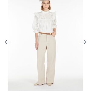 $295 Weekend Maxmara COTTON DRILL WIDE-LEG TROUSERS size 10 color sand NWT