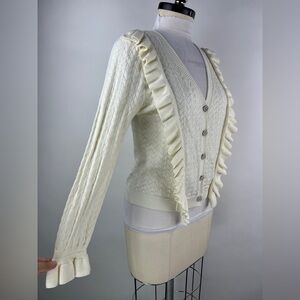 💚 2963. Ruffled Button Front Cream Cardigan