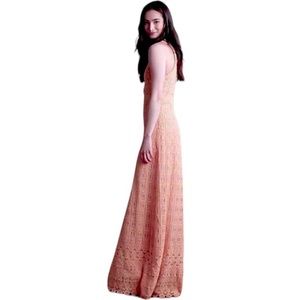 $298 Anthropologie Corina Laced Maxi Gown Medium Peach Lace Overlay Formal Dress